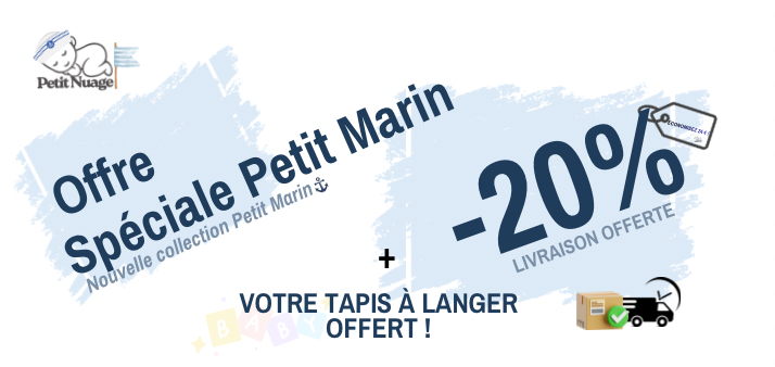 Associez votre sac Petit Marin à la couverture assortie et profitez de -50 % immédiat dans le panier.