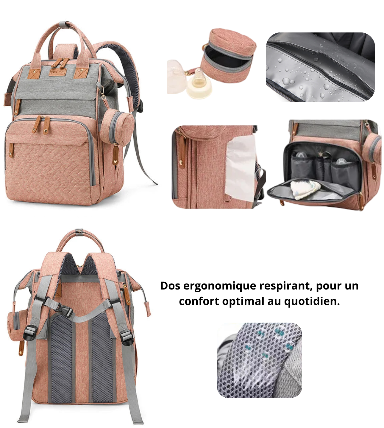 Nos sacs à langer sont spacieux, légers et imperméables, avec de multiples compartiments pour tout organiser. Chaque modèle allie style et fonctionnalité, idéal pour les voyages, les promenades et le quotidien.